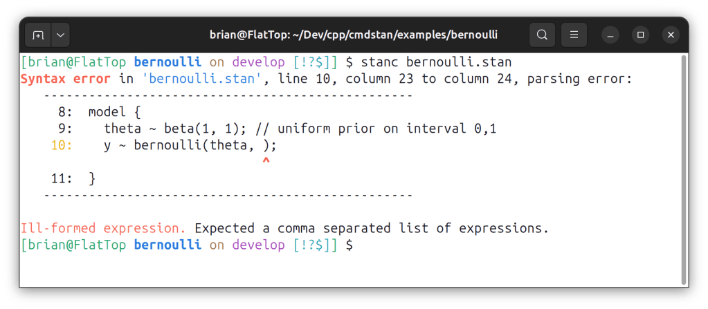 The Stan compiler’s job is primarily to turn Stan code into C++ code, but a very close second is to turn invalid Stan code into error messages. Both of these functionalities saw improvements this version.